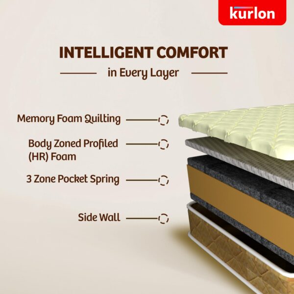 - Profiled HR Foam & Memory Foam Quilting: Enjoy the gentle, cozy feel and comfort sleep with mattress integrated with memory foam to provide enhanced softness and it reduces pressure points, discomfort by offering required back and body support and body zone profiled HR foam to offer required comfort to targeted body parts for enhanced comfort and to reduce pressure points.